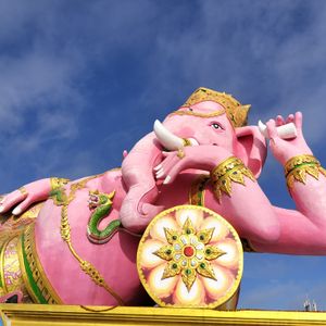 念願のピンクガネーシャ 象乗り アユタヤ