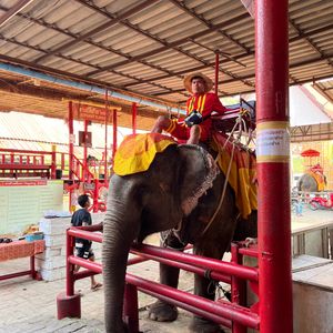象乗り体験はその場で1人300バーツプラスして10分→20分に変更しました。遺跡のある広場を回って最後に川を通って戻ってくるルートです。象も落ち着いているので全然怖くないです。また、途中木陰で休憩中に同じツアーに参加していた方の象が隣りに来て、象同士が鼻でじゃれ合ったりしていて可愛かったです。