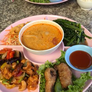 ランチは3つ(パイナップルチャーハン、パッタイ、パッシーユ)からの選択で、初めていただくパッシーユにしました。お醤油辛くなく深みのある味わいにぺろっと食べてしまいました。ツアー代金を2人分支払っているのに、もう1皿とか何かサービスがないのかなと損した気分でした。