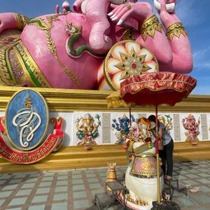 数日前の予約で、1人参加だったため、2万近くしました。結局は乗り合いで私を含め5人がツアーに参加してました。朝6時にホテルにピックアップ、2時間かけてピンクの象へ。日本語力の低いガイドが適当に説明してくれます。滞在時間20分ほどで次のパクナム寺院へ。ここでも滞在時間は20分ほど。ホテル送迎だと思っていたけど帰りはアソク駅でのドロップオフ。自分で言った方がいいです。