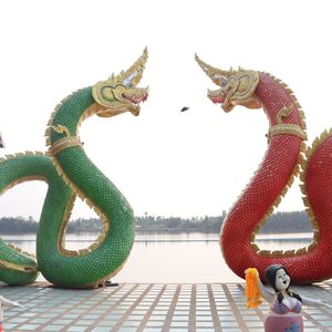 新型コロナウイルスの影響で、観光客自体が少ない時期だったので、予約したツアーに参加したのは私達二人だけでした。ホテルのピックアップ時間が6時とかなり早く、ホテルの朝食が食べられなかったのが残念でしたが、早朝だったおかげで道も空いていてピンクガネーシャに早く着いたので、ほぼ貸し切り状態でした。ガイドブックには、自分の生まれた曜日の色のネズミの耳に願い事をすると良いと書かれていましたが、ガイドさんが説明してくれたのは、ピンクガネーシャの前に置かれた二匹の黄色いネズミの耳に…とのことでした。私達は念のため、その黄色いネズミと自分の生まれた曜日の色のネズミ両方にお願いして帰りました。ワットパクナムの方も観光客はそんなに多くなく、写真を撮るのにも並ぶことはなかったです。写真でみるよりはるかに綺麗だったので、バンコクに行ったらぜひ一度は訪れてほしいスポットだと思いました。