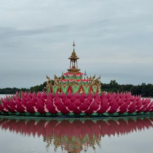 船上から見るピンクガネーシャはとても美しく全体をしっかり確認することができました。また、同じお寺内に様々な宗派の像があり、参拝できましま。