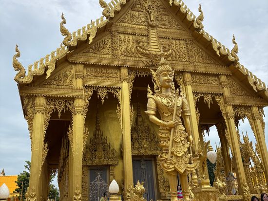 ワットソートンは工事中で本殿参拝のみ。バンコン川遊覧は雨で川が増水して中止。結局ワットサマンラタナナムがメインになりました。ただ、もともとこのツアーは、ワットサマンラタラナムがメイン。そこは、宗教型アミューズメントパークみたいなところです。自力で行くのはかなり難しいと思うのでツアーで行くのがベターです。また到着を空港にすれば、渋滞はほぼないので時間を読めます。なので、スワンナプーム発が20時以降とか、翌朝早い方であれば、空港への移動手段としてこれが選択肢になるかと思います。