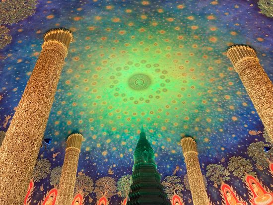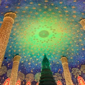 ピンクのガネーシャは想像以上にピンクで大きく大興奮でした。ガイドさんがお祈りのしかたを教えてくれて、しっかり願いごとをネズミさんに伝えることができました。ワットパクナムの天井はグリーンでとても綺麗でした。朝早い出発だったので時間通りに到着してスムーズにまわることができました。