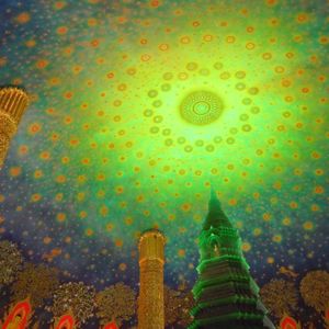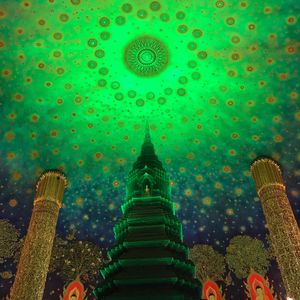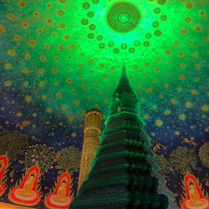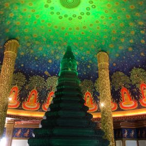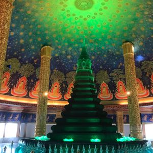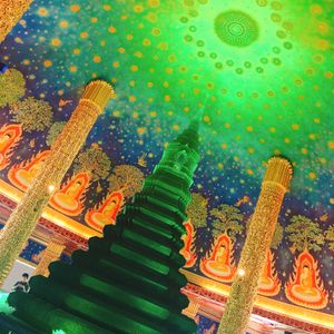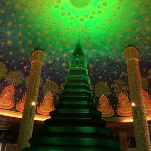 「ワット・パクナム」は、4階にあるエメラルド色の仏塔と天井の宇宙の様な壁画が、とても幻想的で美しかったです。