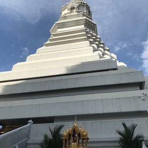 朝6時過ぎにガイドさんのお迎えがあり車に乗り込み出発。約2時間ほどでピンクのガネーシャに到着!朝早いからか、観光客はほとんどおらずゆっくり写真撮影ができました。その日はパレード?があり地元の方々が踊り歌いながら歩いていて、とても賑やかでした。1時間ほど滞在し、次はワットパクナムへ向かいました。エメラルドグリーンの仏塔はとても幻想的で、天井画の美しさにとても感動しました。写真撮影をする時間も充分にありました。最旬レストランでのランチはパッタイをいただきました。表参道にいるようなオシャレなレストランでお食事もドリンクも絶品でした!ドリンクは自費ですがオーダーされることをおススメします。こちらもゆっくりとすごせました。次に、ワットベンチャマボピットへ。寺院の中には入らなかったですが写真撮影など行え楽しめました。次に花市場へ向かい散策。そのあと、オシャレなカフェでケーキとコーヒーを飲みました。ケーキも美味でした。最後は、ルーフトップバー(シロッコスカイバー)へ!64階からみる景色は素晴らしいものでした。インスタ映えすること間違えなしです!