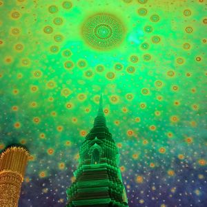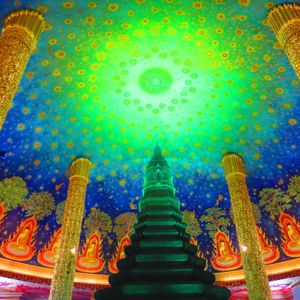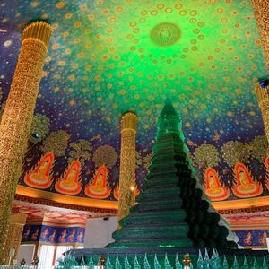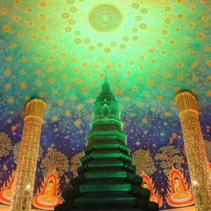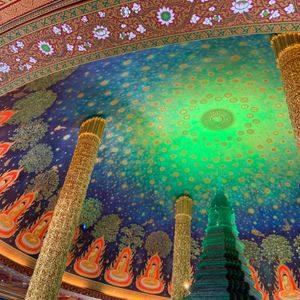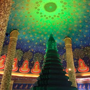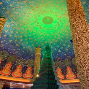 その後、エメラルドの天井のある寺院に行き、まさにフォトジェニックな空間に!