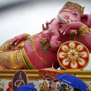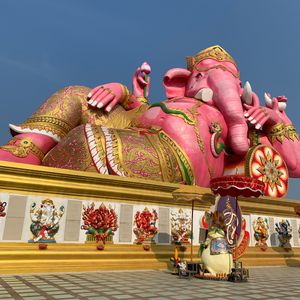 巨大ピンクのガネーシヤも想像よりデカくて寺全体の感じ