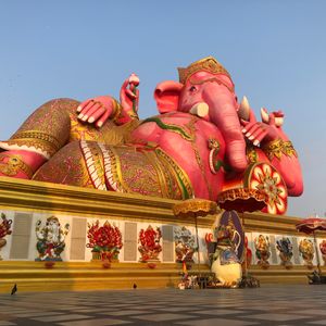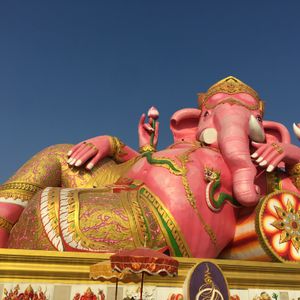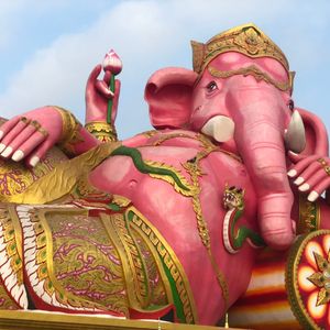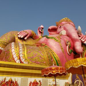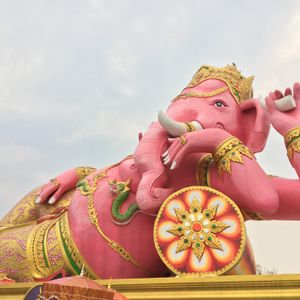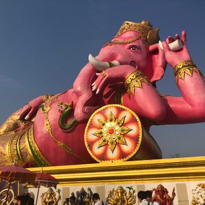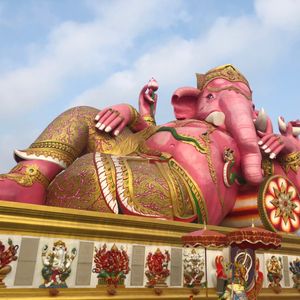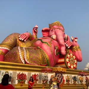 ピンクガネーシャまでは、移動に片道2時間かかります。寝ていればすぐですが、まだかまだかと言っている方もいらっしゃったので、移動時間が苦痛な方はおすすめしません。でも、ピンクガネーシャ自体は本当に大きくて、ネズミに願い事も会えたので良かったです!また、ピンクガネーシャ以外にも、巨大な像が2〜3個あったのでそれも見れます。ピンクガネーシャ関連のお土産は、小さな像(親指サイズぐらい)で800〜600バーツとボールペン25バーツ、ペンダントトップ200〜300バーツぐらいしかなかったのが残念でした。