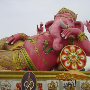 ピンクのガネーシャはとても可愛くて迫力満点!ネズミにもお願い事をしっかりしました。ただ、滞在時間が思っていたよりも短くてもう少しゆっくり見学できたらなと思いました。ワットパクナムはとても綺麗で感動しました。