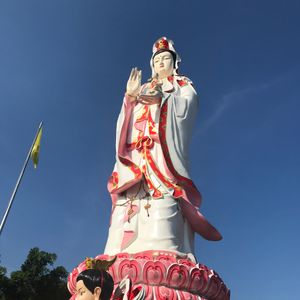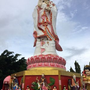 バンコクから早朝6時ごろに出発して8時ごろにお寺に到着しました。途中マンゴー畑など、のどかなタイの風景が広がっています。到着すると何よりも目立つピンクのガネーシャと大きな菩薩が迎えてくれます。目に入ってきた瞬間はとてもテンションが上がります。中に入るとその大きな二台はもちろん、そのほか沢山の像があちらこちらに点在しています。そしてところどころに日本のアニメのキャラクターがいて、とてもカオスな状況でした。