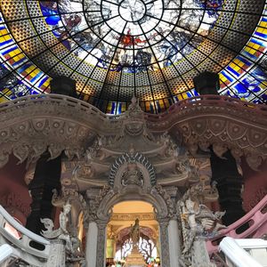 そしてこの巨像の中、入れるんです!、中に入ると神秘的なステンドグラスも見れるお寺があり、とても綺麗でしたよ。