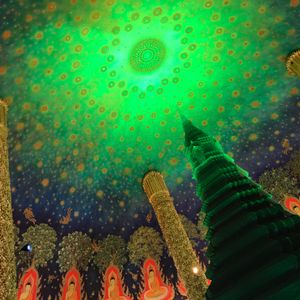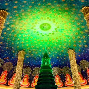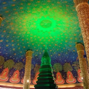 ワットサマーン寺院は、ピンクのガネーシャ以外にも見どころ色々。いんちきテーマパークっぽい面白さがあって、思ったより楽しめました。ワットパクナム寺院の天井画は、本当に美しい!それを背景に自分の写真を撮ってもらい、SNSのプロフィールに使わせてもらっていますが、友人からも好評です(笑)