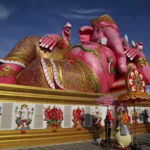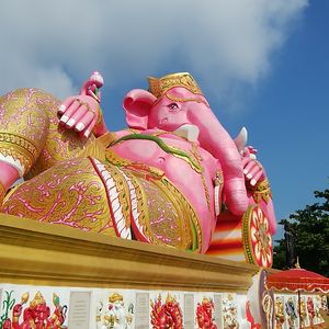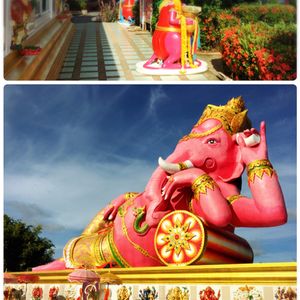 ピンクのガネーシャ:遠方ですがバスで連れて行ってくれるので楽ちんです。道中2回スコールに降られましたがバス移動なので当然無事でした。フォトジェニックというよりパラダイスな感じの寺院でしたが、それはそれでいい思い出になりました。曜日ごとに色分けされたネズミさんの耳元にお願いごとをささやくとネズミさんがガネーシャにそれを伝えてくれる、というシステムなのでご自分が生まれた曜日を調べて行った方がいいです。
