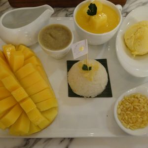 車の移動はクーラーが効いてとても快適でした。ひとたび外に出ると暑くて暑くて汗が止まりませんでしたが、メイクミーマンゴーへ。そこは午前中に行ったワットポーのすぐ近くでした。人気店らしく若い人たちが多くて空いてるテーブルは1つだけでしたが、ソファーにクッションがありとてもリラックスできました。定番のマンゴースムージーをいただきました。甘くて冷たくて美味しかったです。