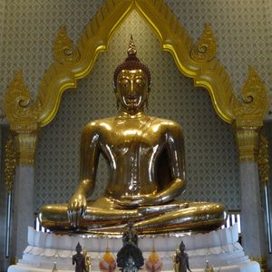 その次はワットトライミット。金で鋳造された座像を見学。ワットパクナムより参拝される観光客が多いのにビックリしました。