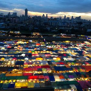 バンコクインスタ映えスポットを集めた便利な午後ツアー。ツアーのほとんどはチャチュンサオ県(ピンクのガネーシャ)への往復。最後の鉄道夜市では駐車場に上がり高い位置からでないとテントのカラフルな写真撮影ができないため、隣接するモールの駐車場が解散場所になっています。