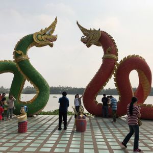 女子大生2人で参加しました。参加人数は全部で35人ほどだったと思います。バスの席がゆったりとしていて快適でした。ワット・パクナムでは展示室の見学は時間の問題で出来ずエメラルド色をした仏塔のみの見学となりました。