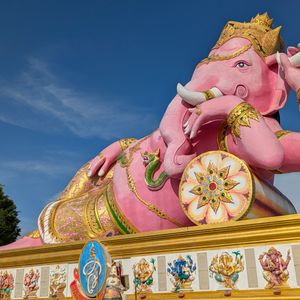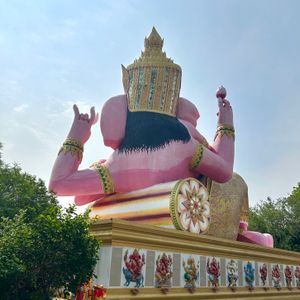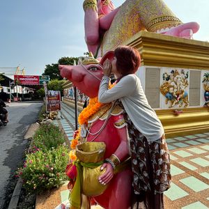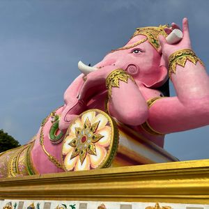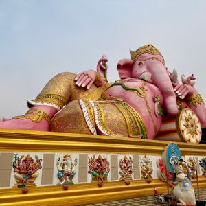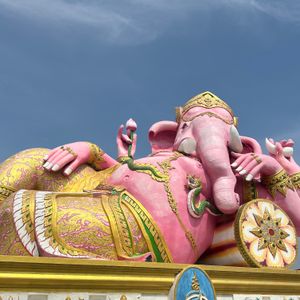 ピンクガネーシャへ行きたくて、行き方を調べましたが、個人ではピンクガネーシャへ行くだけで精一杯。ツアーを調べたら、なんと王女誕生日特別SL運行日でSLでピンクガネーシャ以外にも色々行けるツアーを発見!即申し込みました。特別運行SLは、ローカルの方とボックス席向かい合わせ席で、カタコトの英語で、時には翻訳アプリを介しながら、たくさん会話していただきました。次は7月にアユタヤ行きのSL運行があるとも。とても楽しみにされているようでした。線路際にもSLへ手を振っている方々が多く、スペシャル感を感じました。現地に到着し、市場やタイ料理のランチ、金ピカのお寺、巨大青銅ガネーシャ像、ピンクガネーシャを回り、ただの観光地ではない現地の方の風習、信仰心を垣間見せていただいた感じがしました。1番の目的のピンクガネーシャがまさかの改装工事中でしたが、それも気にならないほどのいいツアーでした。レストランの席もグループごと別々だったり、冷たいお水おしぼりのサービスまであり有り難かったです。集合場所も行ってみたかった荘厳な雰囲気満載のフアラムポーン駅、解散場所もバンコク中心部のプロンポン駅でツアー後は高級デパートを回れて、有意義な一日を過ごせました。細部まで考えられている大満足なツアーで母娘旅行のいい思い出になりました。