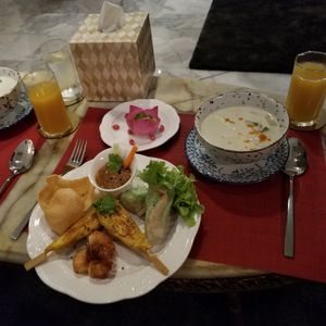 スパの食事なので簡単なものかなと思っていましたが、本格的なお食事で味はおいしく見た目も美しくとても幸せな気持ちになりました。