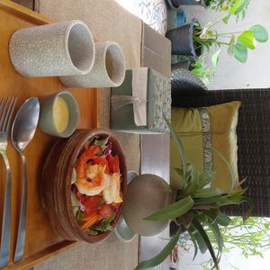 スタッフは皆さんニコニコ。接遇が素晴らしい‼️ドリンクは、4回位出てきたでしょうか。お冷やかと思ったら、甘い❗️パンダンカスタードの風味がする水と、オレンジジュース。トリートメントの合間にフルーツ。バナナヨーグルト。タイのバナナはもちもちしていて美味しい。最後にまた別のお部屋に通されミール。パッタイと具たくさんのスープ。これがすごく美味しい!他にパイナップル皿に乗ったフルーツ。トリートメントの前の問診は男性が丁寧に、ミールはいつが良いか、特にマッサージして欲しいところ、などを簡単な英語で聞いてくれます。時間通りに別棟の個室ツインに通され、担当の方と対面。ニコニコでなにかと優しく、とても行き届いた対応でした。トリートメント中は気持ちの良さに殆ど眠ってしまいましたが、最