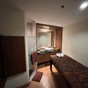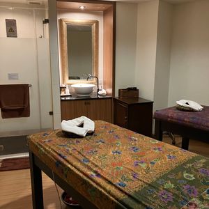 友人の女子2名で同室で施術を受けました。清潔でアジアンチックの雰囲気のある広いお部屋でした。途中で出されるフルーツやお茶、バラ風呂も気分が上がりました。施術してくださった女性は、英語はあまり通じない感じでしたが、特に問題は感じませんでした。マッサージの強さは最初のカウンセルでミディアムをリクエストしていましたが、結構、力強かったです。強すぎに感じた部分は声を出せばちゃんと調節してくれます。施術が終わったときに着替えに残されている時間等の説明がなかったので、予定より時間オーバーしてしまったみたいで申し訳なかったのですが、これについてはもっと説明があってもよかったのかな?と思いました。総じて贅沢な時間を過ごすことができて、大変リラックスできてよかったです。