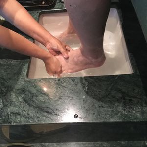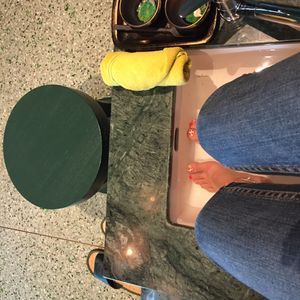 ・お店の内装がとっても可愛らしく、そこにいるだけでウキウキしました。入店すると目の前のソファに座るように促され、お茶を出してくれます。そこで靴をスリッパへと履き替えます。洗い場へ案内され、お湯にハーブのようなものを入れてからスクラブで足を洗ってくれます。