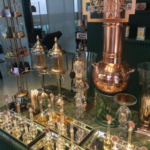 ・小瓶に香水が入っていて、それを混ぜてオリジナルの香水を作ってくれます。それぞれの香水を紙に付けて、それを一緒に嗅ぎます。私はフローラル系で、ジャスミンとリリーの香りが好きと伝えたら4つの香りを混ぜて一発で私の好きな香りを作ってくれました。小瓶が3種類あり、私はハート型のものを選びました。これは別料金で購入しました。