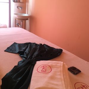 ウェルカムドリンクをいただいた後、フットバスのエリアに移動し、フットバス時にマッサージの強さ(soft, medium, strong)や、重点的に施術してほしい場所、触ってほしくないところなど聞いてくれます。フットマッサージが終わると、部屋に案内され、使い捨て下着とローブに着替え、施術開始です。