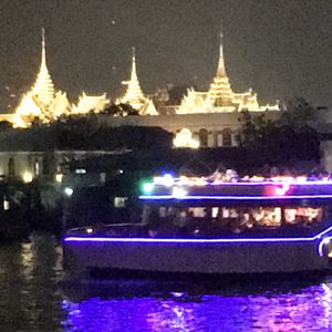 寺院の幻想的なライトアップを期待して参加しましたが、プミポン前国王の崩御の為か、はたまた通常な状況なのか不明でしたが、幻想的なライトアップとはかなりかけ離れたものでした。1昨年、やはりVELTRAのブタペスト・ナイトリバークルーズに参加しましたが、それとは雲泥の差。ブッフェもまあ普通。今回は送迎付きで現地ガイドさん付き添いでの参加でしたが、クルーズ船の桟橋(発着地)がいくつもあり、ガイドさんも何故かさんざん迷っていました。現地集合のツアーでは恐らく初めての方はたどり着けないかも。参加するのであれば送迎付きをお勧めします。