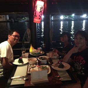 船の中で最高の景色も見れたし船中の雰囲気も落ち着いてゆっくりできました。タイ語が分からなくてもスタッフさんは優しく丁寧に料理を説明してくれたし、終わってスタッフさんが道路まで一緒に行ってホテルまでのタクシー代も交渉してくれた。着いて初めての日でしたので不安とかありましたけど、お陰様で心からホットしました♪(๑ᴖ◡ᴖ๑)♪