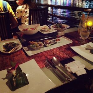 タイ到着後、その足で参加し、疲れも心配されましたが、優雅で楽しい雰囲気に一気に疲れが吹き飛びました。 食事はオーソドックスですが、クルーズならではの雰囲気を愉しむには十分です。 船からみた金色の寺院、気持ちのいい風、最高にリラックスできた一晩でした。
