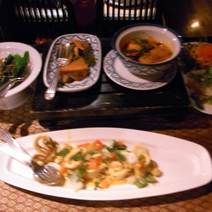 今回、三回目の利用でした。初回はオープンドアだったんですが、前回と今回は室内でした。いずれも冷房が効きすぎているという、タイの慣習を味わいました。(笑)料理もいつも通りでよかったですが、歌手の女性の一部の客に偏った働きかけが気になりました。多くの客がいたのだから、まんべんなく皆を楽しませる努力が必要だろうと感じました。