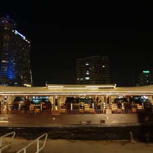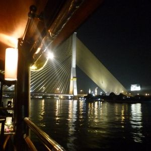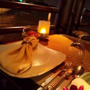 帰国前夜のディナーに利用しました。お迎えは時間ぴったり、波止場でお客の入れ替えのため少し待ちましたが、気にするほどでは無かったです。ディナーはインターナショナルビュッフェで、少しですがタイ料理もありました。必ずしもタイ料理が得意な人ばかりじゃないからでしょう(例えばパクチーが食べられないウチの両親)。タイっぽい砂糖菓子はおいしかったです。エンターテイメントはタイの伝統舞踊や手品、生演奏でした。私たちが行った時はリクエストは聞いてもらえませんでしたが、楽しめました。残念な点は、他の方もおっしゃってますがワットアルン等を知らぬ間に通り過ぎてしまったことです。これはツアー催行会社の問題では無く、船側に工夫してもらいたいです。それと・・・これも船の問題ですが…最後の最後に隣の韓国人家族のテーブルにでっかいゴキブリが出没したことですかね・・・。ちょっと雰囲気を壊された気がします(笑)総じて、満足できる内容でした。