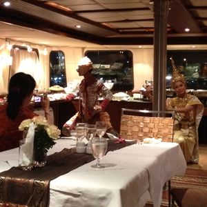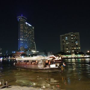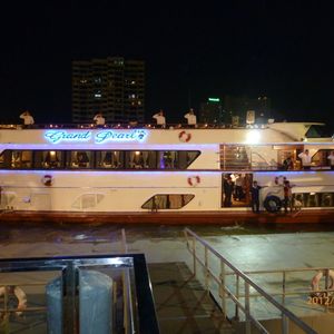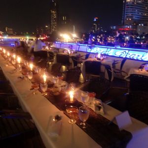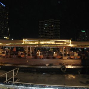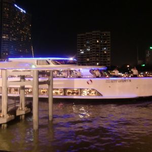 船内の雰囲気がとても良かったです。日本の方はとても少なく、インターナショナルな感じです。また、生演奏の方も、リクエストに応じるなどして雰囲気を盛り上げてくれます。料理もまあまあです。寿司は「あれっ」と思うようなものでしたが、外国人は殺到してました。トムヤムクンは美味しかったし、全体的には合格です。なにより、デッキに上り、夜風に当たりながら眺める両岸の夜景が格別です。