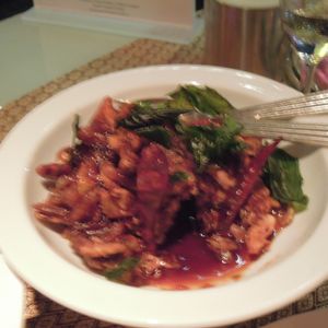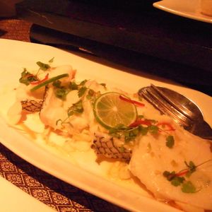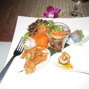 料理は5つ星ホテルのダイニングで出されるようなタイ料理のコース。味付けは西洋風にアレンジされているが、タイの香料が苦手の方にはちょっと向かないかも。