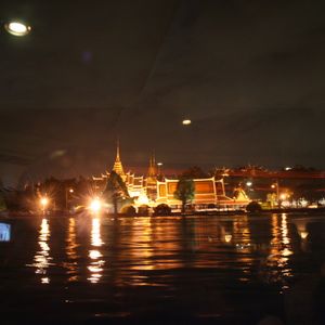 にぎやかな船上でしたが、川沿いにたつ寺院のライトアップ