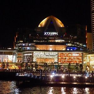 3Fのデッキ(写真)にも足をのばしてみて下さい。噴水がライトアップで綺麗で、橋をくぐる時は近いので、手をあげたりして盛り上がってました!