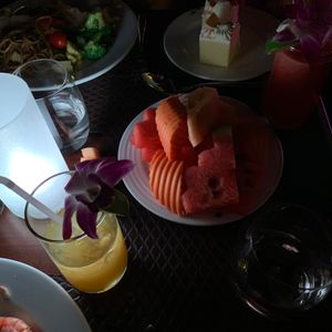 食事は普通に美味しいです。ただ、ビュッフェなので、コース並みの期待はしないように。あと果物も早めに取っておかないと、もうない(◞‸◟)って事になります。早めにしっかり食べて、後半はゆっくり楽しんで下さい。