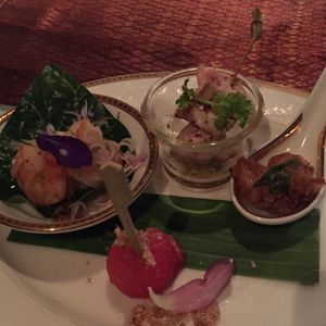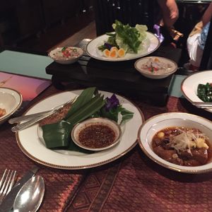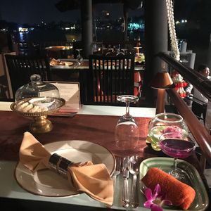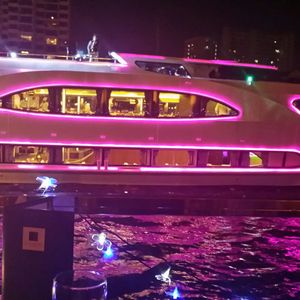 チャオプラヤクルーズは2回目。賑やかなのが嫌いなので、前回同様ビュッフェではなく、こじんまりしたコース料理のプランを選択しました。ホテルのクルーズよりここは少し値段が高かったので期待しましたが、少々がっかりです。①乗船時間になっても誘導がなく不安になりました。家族での利用だったので一層です。②メニューがテーブルごとに置かれておらず、何を食べているのか、あと何品くるのかがわかりませんでした。③前回のホテルのクルーズは寺など航路上の見所の説明パンフレットがありましたが、今回はいくつか口頭で名称だけアナウンスされただけでした。④わずか3組しか客がいなかったのに、スタッフはバタバタしていて、サービスも丁寧ではありませんでした。⑤食事はおいしかったですが、量が多く、デザートのカオニャオマムアンはもう少し小さくてもよかったです。他のお客さんは持ち帰りをしていました。⑥今回はなぜか少し船の揺れが気になりました。気候の影響なのか、使用している船のせいなのかはわかりません。以上です。静かにチャオプラヤクルーズディナーを楽しむにはいいのですが、値段を考えると他のホテル主催のコースディナーのクルーズの方がいいと思います。