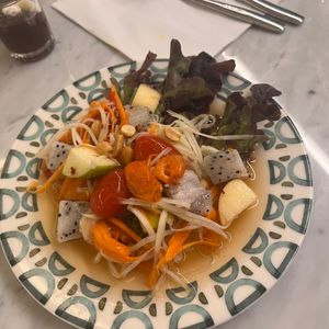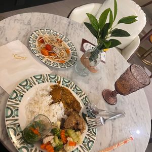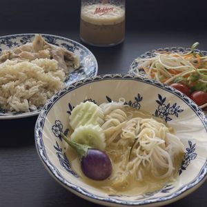 食事は他の有料ラウンジと比べて野菜が多いのが嬉しいポイントです。自分でソムタムを作れるので、フレッシュなソムタムを毎回食べています。時間帯によって温かい料理が変わりますが、カオマンガイは鉄板です。あとそうめんのような細い麺にカレースープを掛ける通称"カレーそうめん"はこのラウンジの名物とのことで、これも毎回食べます。インド人のお客さんが多いのか、インド料理のベジタリアン(ビーガン)料理もあります。