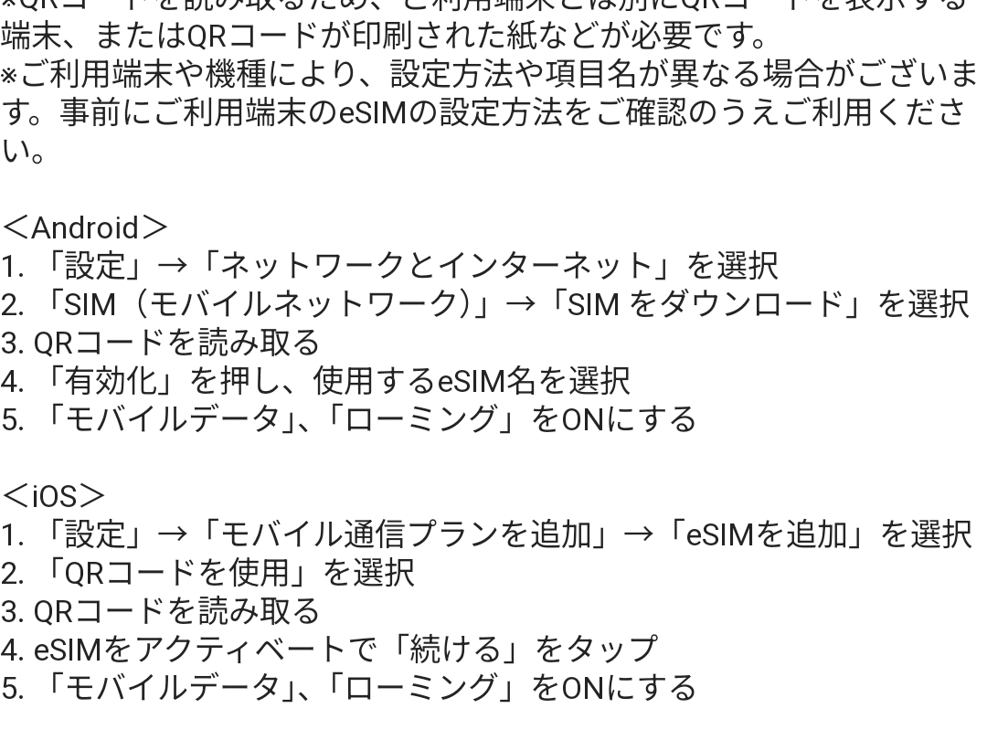 簡単に設定でき、すぐに繋がりました。同伴者はデータローミングに時間がかかっていましたが、問題なく繋がり快適に過ごせました。