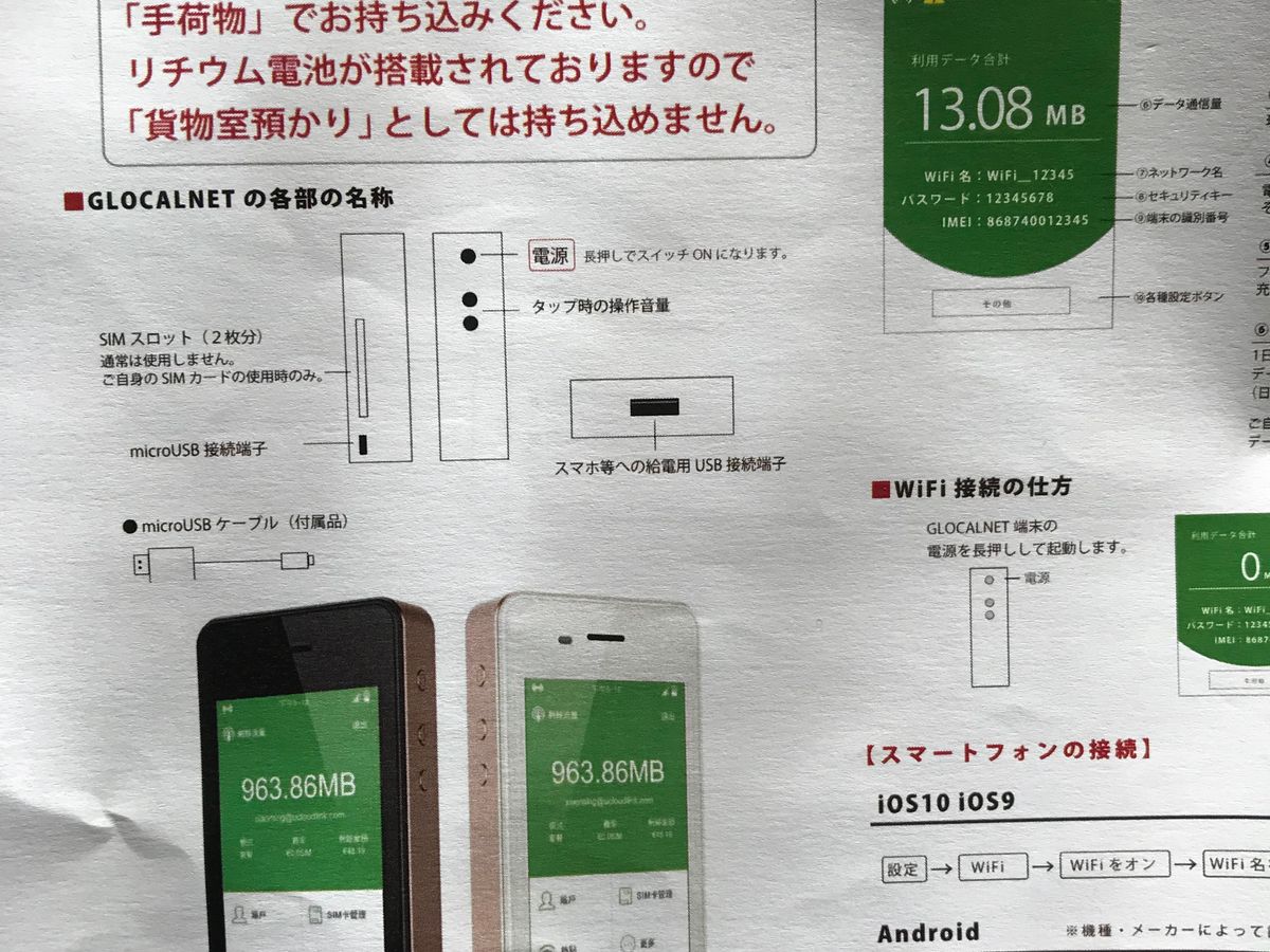 出発5日前に届き、空港で慌てることなく、準備できます。 ホテルのフリーWiFiもありますが、海外のネット事情は