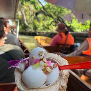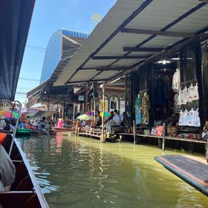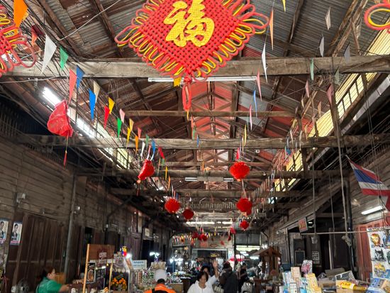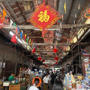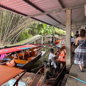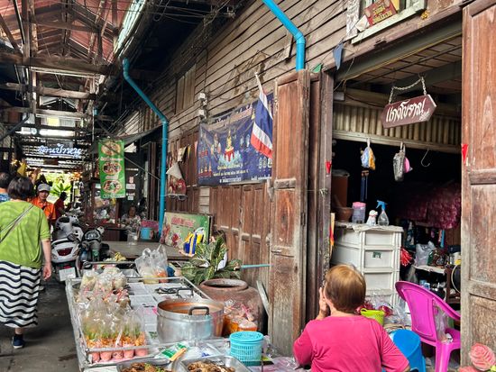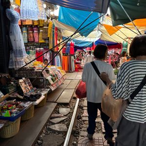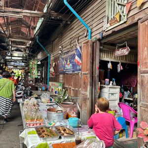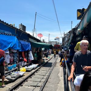 赤ちゃん連れで初めてツアーに参加しましたが、安心して楽しめました。水上マーケットは朝早めの時間だったため混雑もなく、押し売りなどもなく落ち着いて観光できました。商品は似たようなものが多かったので、名物のココナッツアイスだけをいただきました。その後訪れたワット・バーンクンは人が少なく、菩提樹に包まれた本堂がとても印象的で静かな雰囲気に癒されました。メークロン市場では列車が出発する場面を食堂で昼食をとりながら見ることができ、迫力満点でした。列車通過後は一気に人が減り、市場散策やマッサージも楽しめました。赤ちゃん連れの場合、列車通過時の混雑には注意が必要です。帰路の渋滞も心配されましたが、スムーズに進みナイトマーケットの1時間前に到着。全体を通して満足度の高いツアーでした。