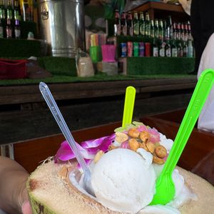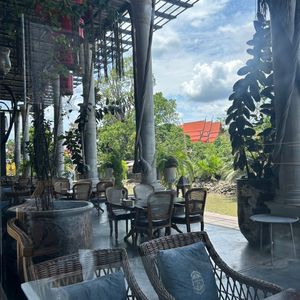 お昼のカフェも、景色もよく、タイ料理以外にもパスタ、ピザ、パイナップルのスムージーなどがあり、本当にどれも見栄えもすごく、おいしかったです。カードも使えました。