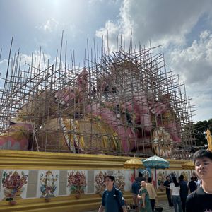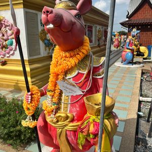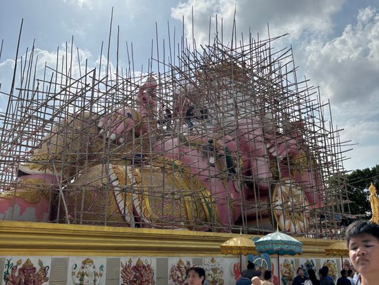 ピンクガネーシャへ行きたくて、行き方を調べましたが、個人ではピンクガネーシャへ行くだけで精一杯。ツアーを調べたら、なんと王女誕生日特別SL運行日でSLでピンクガネーシャ以外にも色々行けるツアーを発見!即申し込みました。特別運行SLは、ローカルの方とボックス席向かい合わせ席で、カタコトの英語で、時には翻訳アプリを介しながら、たくさん会話していただきました。次は7月にアユタヤ行きのSL運行があるとも。とても楽しみにされているようでした。線路際にもSLへ手を振っている方々が多く、スペシャル感を感じました。現地に到着し、市場やタイ料理のランチ、金ピカのお寺、巨大青銅ガネーシャ像、ピンクガネーシャを回り、ただの観光地ではない現地の方の風習、信仰心を垣間見せていただいた感じがしました。1番の目的のピンクガネーシャがまさかの改装工事中でしたが、それも気にならないほどのいいツアーでした。レストランの席もグループごと別々だったり、冷たいお水おしぼりのサービスまであり有り難かったです。集合場所も行ってみたかった荘厳な雰囲気満載のフアラムポーン駅、解散場所もバンコク中心部のプロンポン駅でツアー後は高級デパートを回れて、有意義な一日を過ごせました。細部まで考えられている大満足なツアーで母娘旅行のいい思い出になりました。