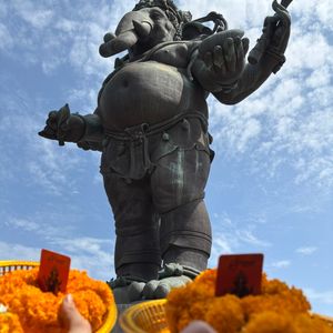 目的地では、あの有名なピンクのガネーシャへ。想像以上にデカい(笑)願いが通常の3倍速で叶うって話、つい全力でお願いしてしまいました。参拝の仕方も現地のスタッフが丁寧に教えてくれて安心でした。