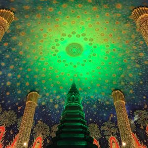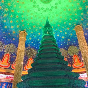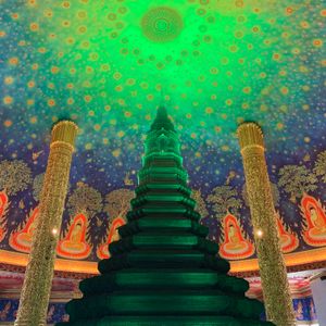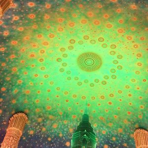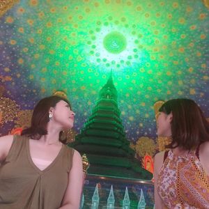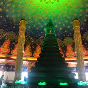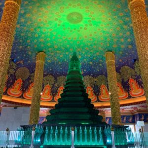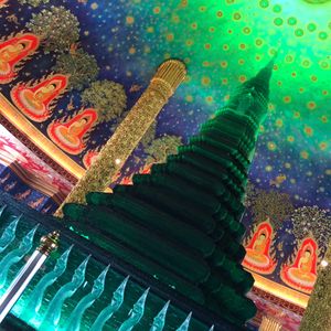 その後、エメラルドの天井のある寺院に行き、まさにフォトジェニックな空間に!