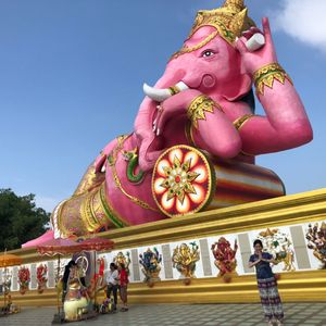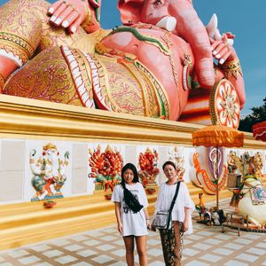 母と2人で利用しました。私は2度目のタイ旅行。前回はピンクのガネーシャを見る時間がなかった為とても楽しみにしていました。しかし母が旅行疲れで体調不良。ガイドの方はサバサバした女性の方で、母の調子が悪いことを伝えるとサクサクと回ってくださり助かりました。たまたま私達だけの貸切ツアーだったのでよかったです。ピンクのガネーシャは想像より大きく、迫力がありました。田舎の方にあるため、トイレを利用するときは少し覚悟した方がいいかもしれません。昼食で利用したレストランも雰囲気がとてもよく、タイで食べたパッタイの中では一番美味しかったです。