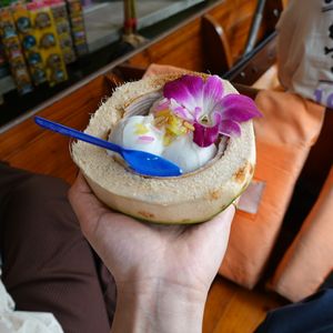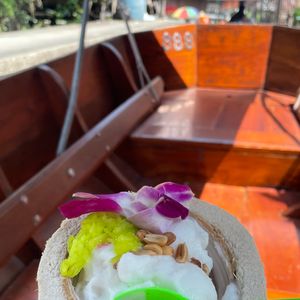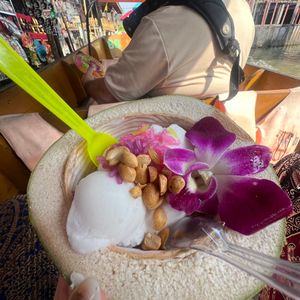 水上マーケットの時は、ココナッツアイスをぜひ食べてみてください。